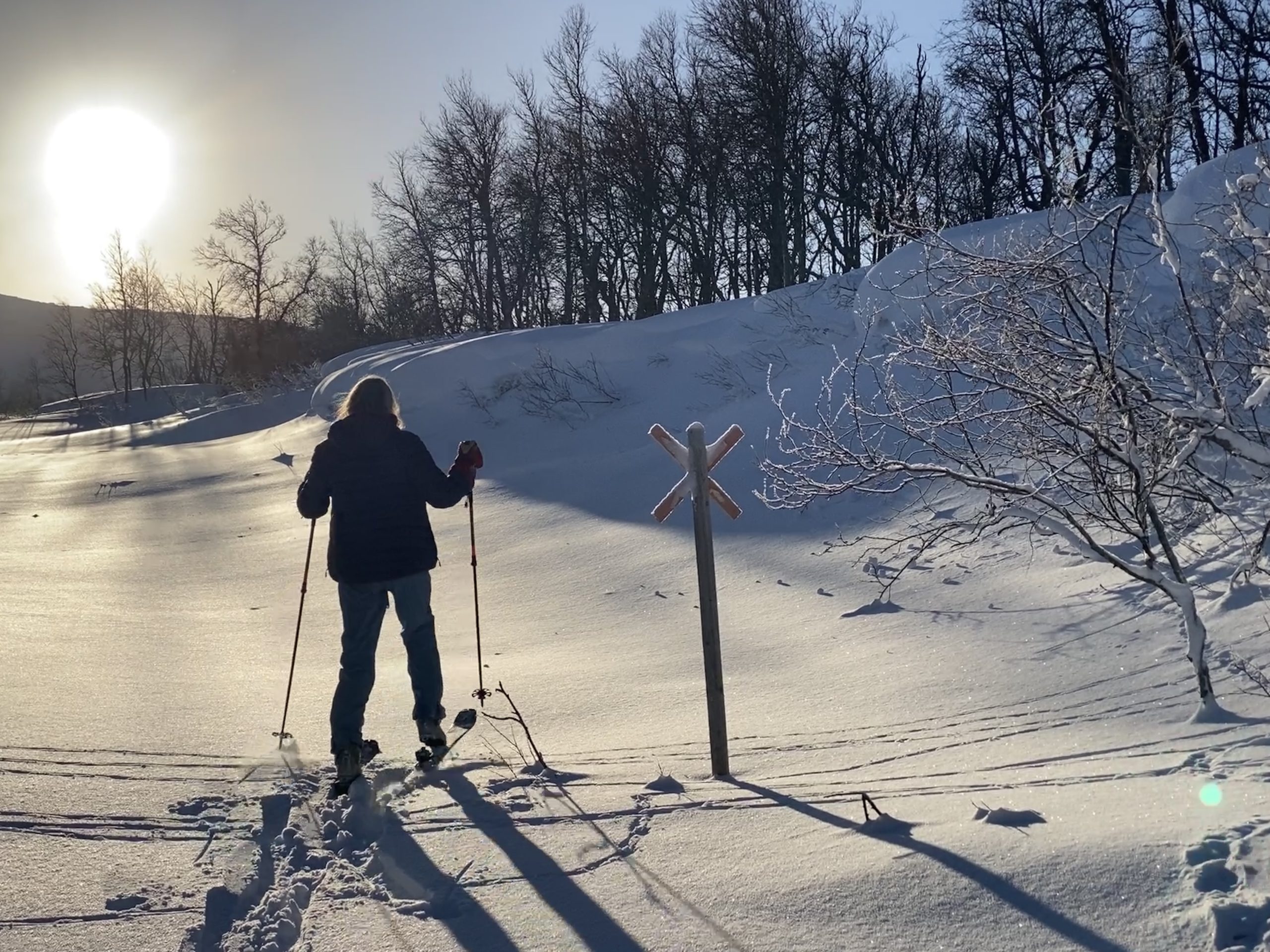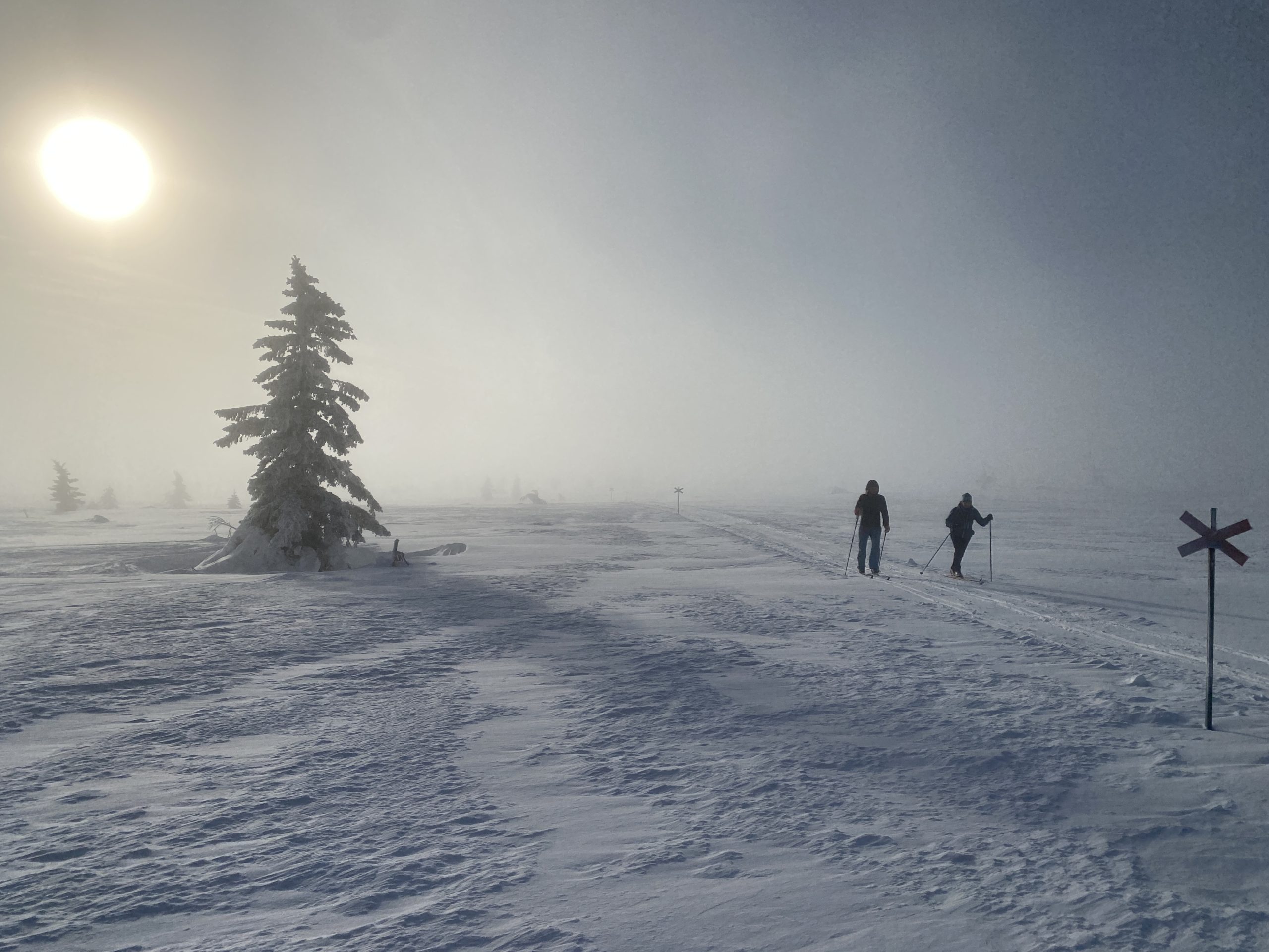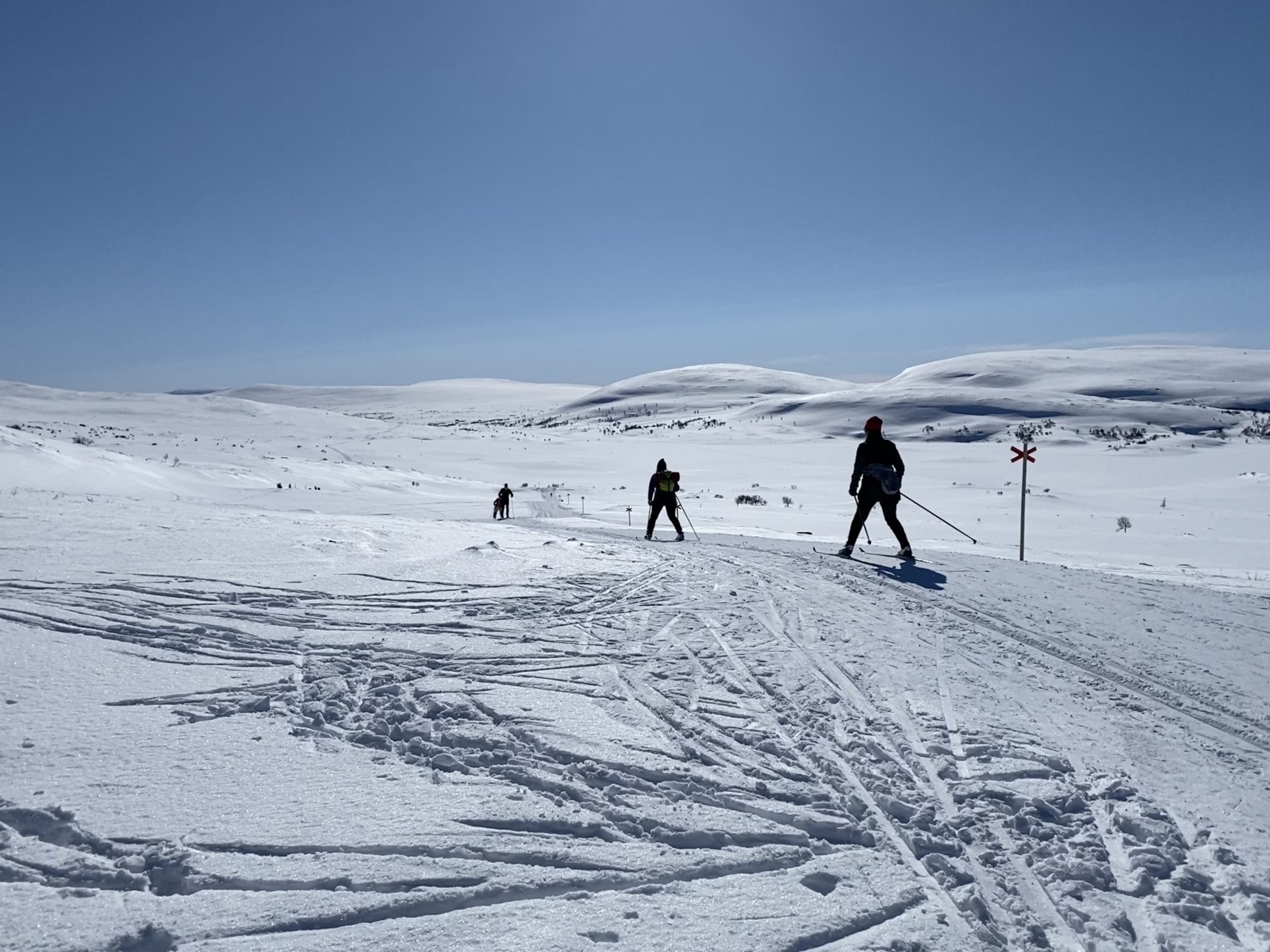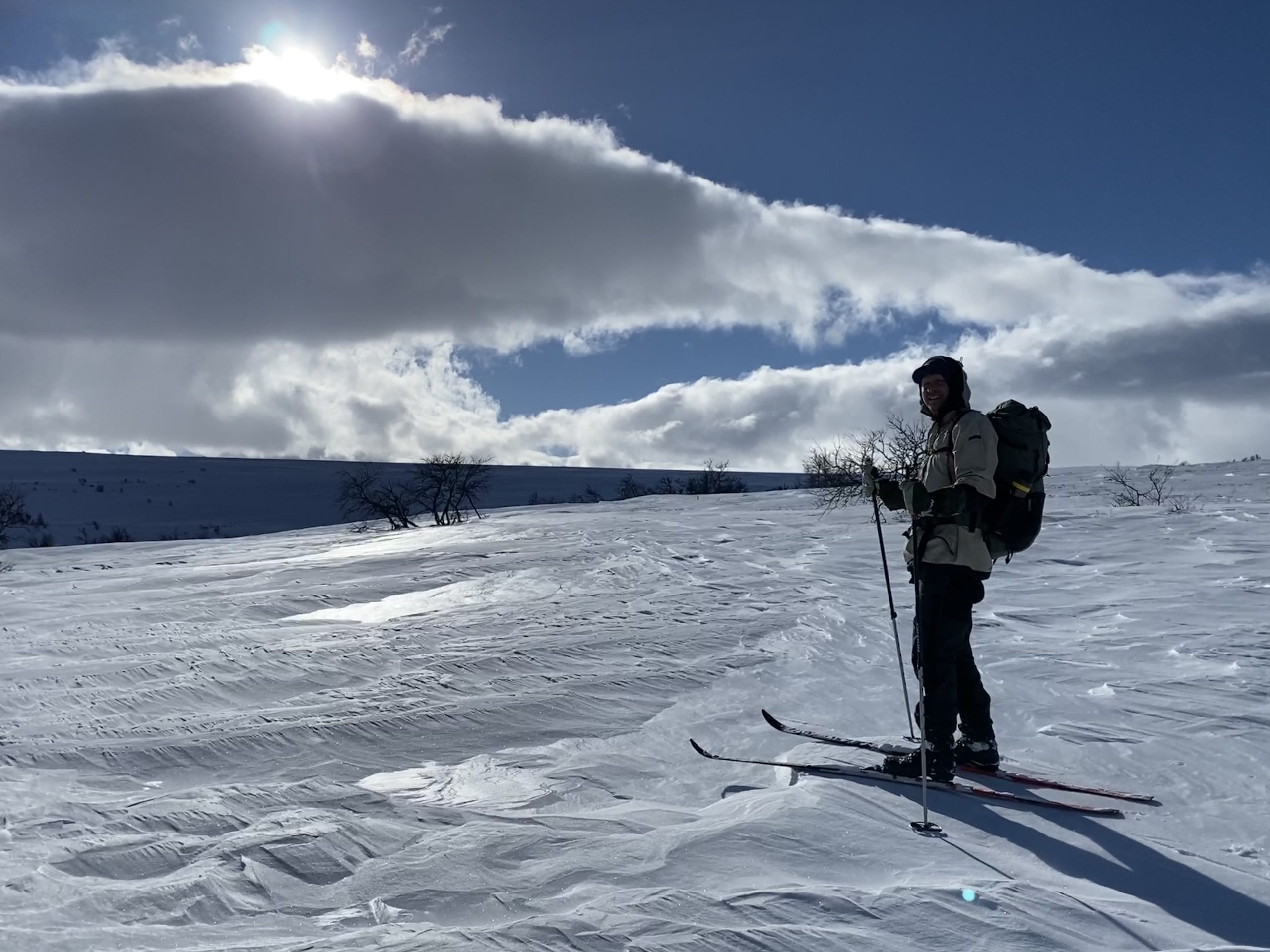 Sol och vindstilla när vi skidade till Djupdalsstugan.